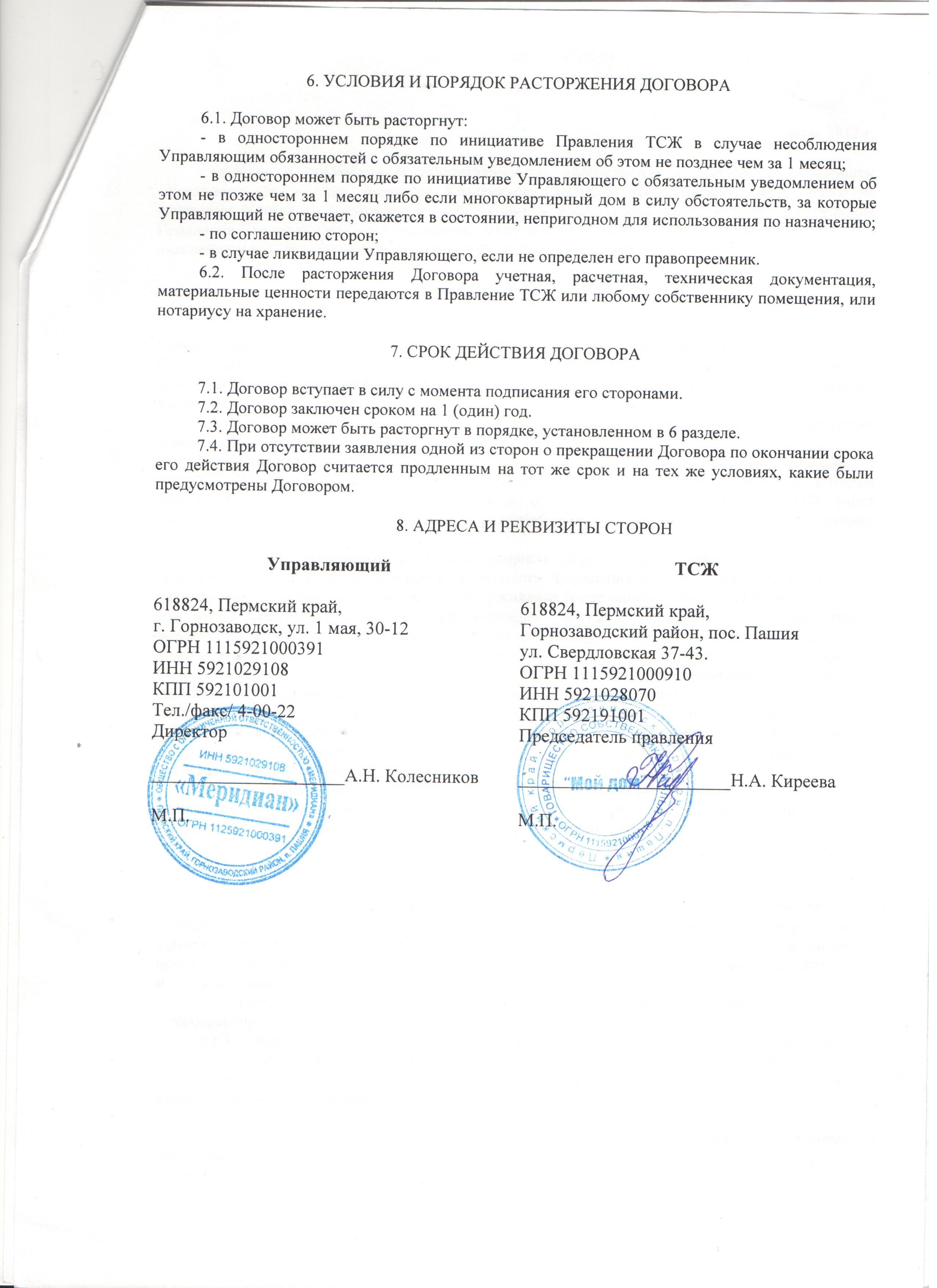 | Договор управления: | |